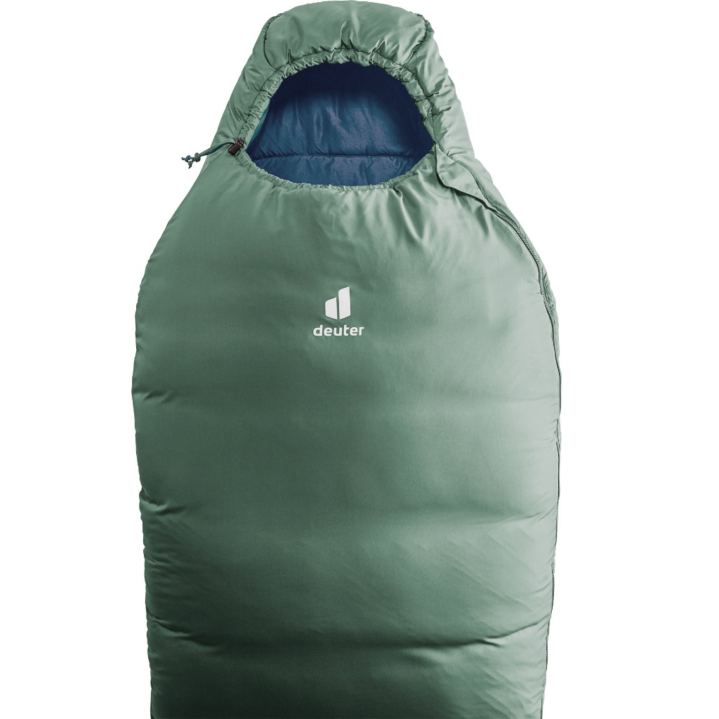 Seu material exterior é produzido com Nylon Deuter Dura Lite RS super macio com tecnologia anti-rasgos (RipStop), garantindo maior resistência. O enchimento é produzido com material High-Loft Hollowfibre, uma fibra sintética da Deuter que garante excelente proteção térmica por toda sua volta (360º Insulation System). Seu modo de construção sem costura garante maior eficiência térmica e resistência à água.