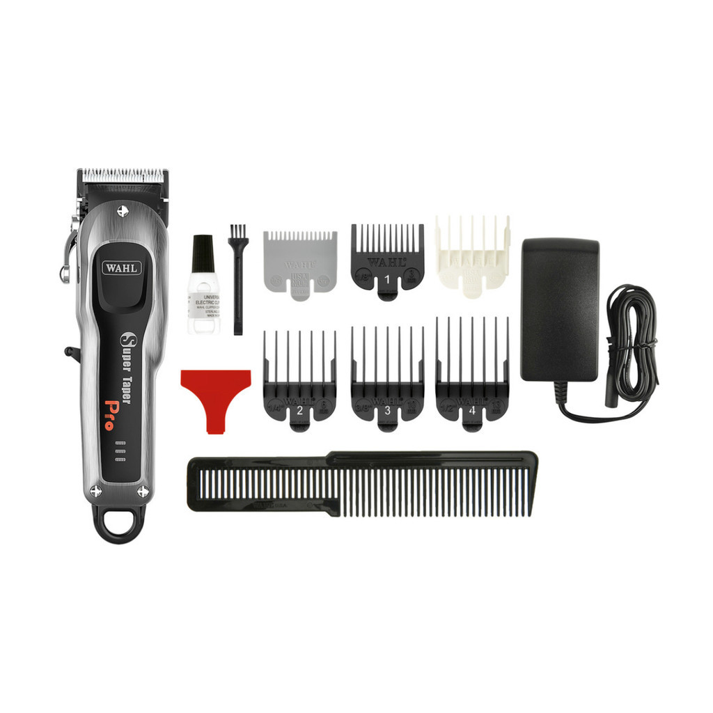 A Super Taper Cordless Pro da Wahl é a escolha perfeita para barbeiros apaixonados. Com motor sem escovas a 5.800 rpm, bateria de 4 horas e lâminas cromadas de alta precisão, oferece cortes rápidos e precisos. Seu design elegante e praticidade a tornam uma atualização essencial para a rotina de corte, elevando a experiência do cliente.tem menu de contextoCARACTERÍSTICAS EXCLUSIVASMáquina de corte sem fio profissional, com motor sem escovas super silencioso, potente, durável e que não esquenta.Possui bateria de lítio com 4 horas de duração e indicador de nível de carga em LED com 3 fases (carga cheia, 2 horas restantes e 0,5 hora restante).Alavanca de ajuste de lâmina feita de metalLÂMINALâminas cromadas Standard (taper) de alta precisão que podem ser usadas em cabelos secos e molhados.MOTOR GIRATÓRIO SEM ESCOVAS5.800 rpm garantindo qualidade e força na hora do corte.USABILIDADEMáquina de corte sem fio, podendo ser utilizada com fioALTURA DE CORTE1,0 mm alavanca fechada.2,0 mm alavanca abertaBATERIABateria de Íons de Lítio, com até 240 minutos de autonomia.120 minutos para recargaCONTÉUDO DA EMBALAGEMAcompanha 6 pentes graduadores (#½, #1, #1 ½, #2 ,#3 e #4).Óleo lubrificante e pincel de limpeza.Pente Plano para corte e carregador