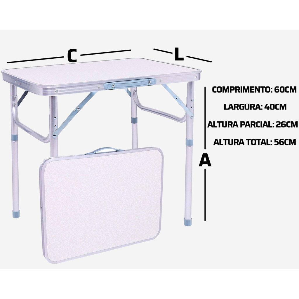 Mesa Dobravel Portatil Vira Maleta Camping Praia 60x45cm