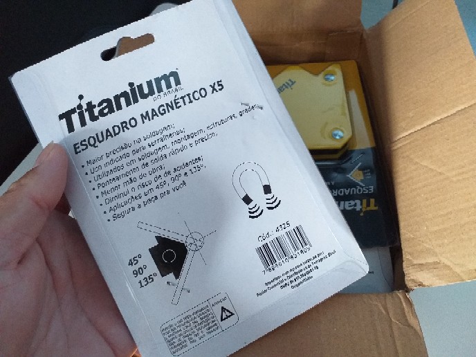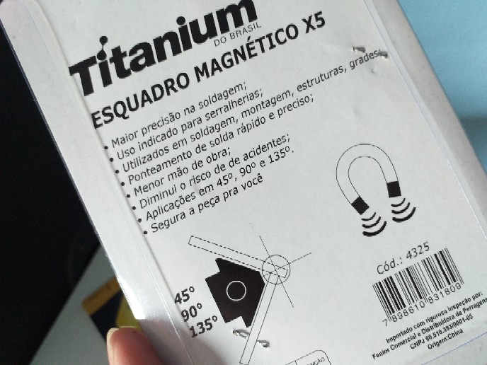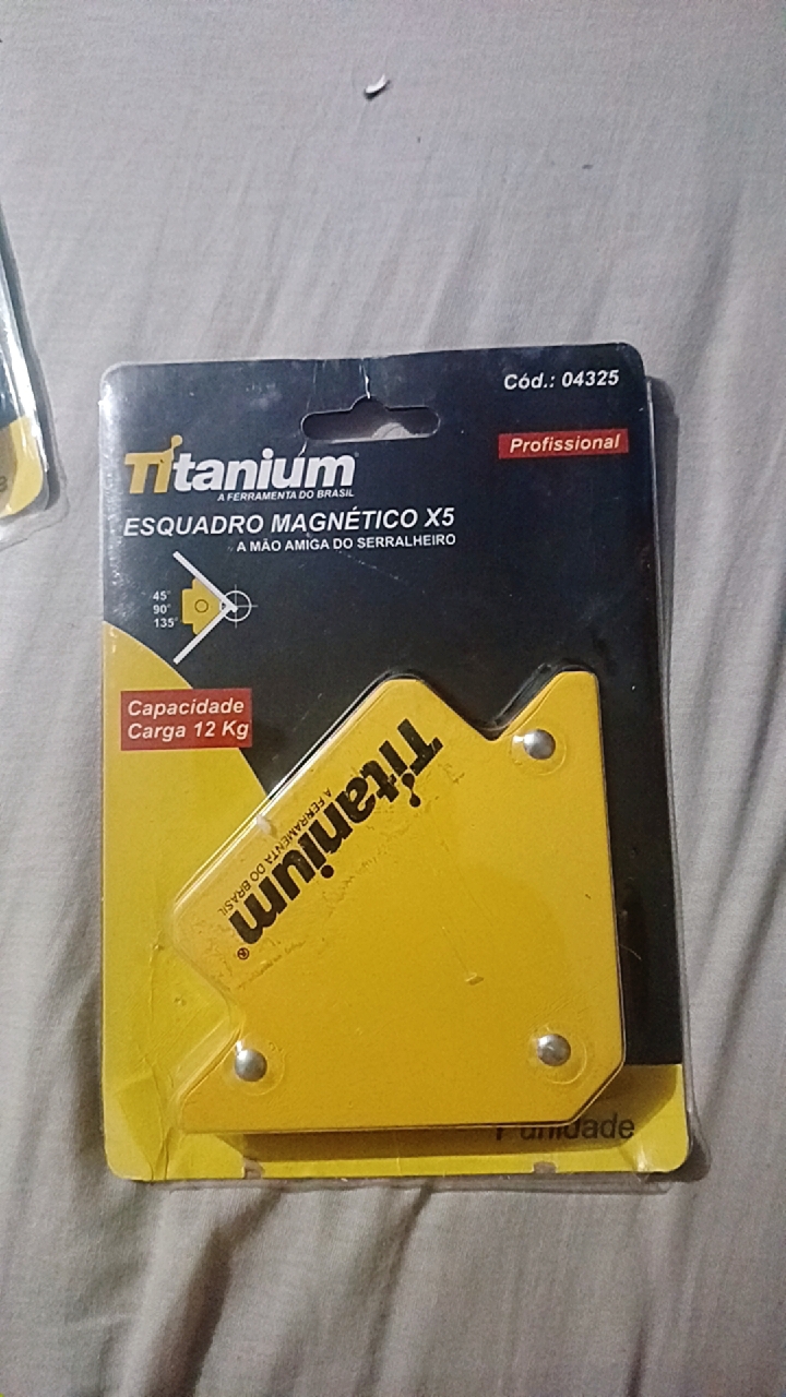 O Esquadro Magnetico Titanium 12 Kg e ideal para serralherias, soldagem, montagem, estruturas, grades, garantindo maior precisao. Com ponteamento de solda rapido e preciso, o Esquadro Magnetico Titanium 12 Kg diminui o risco de acidentes, oferece precisao em angulos de 135o, 90o e 45o, segurando a peca para voce poder pontear com precisao e seguranca.
