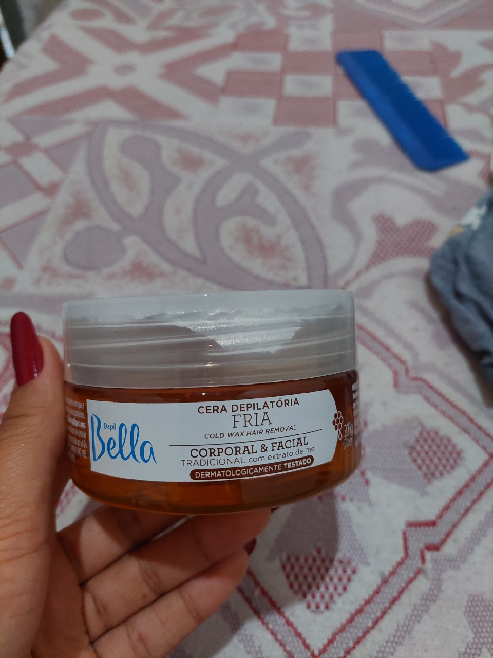 Aviso: Não reaplique a cera mais de duas vezes na mesma região. Não use no rosto, virilha e axilas. Não utilize com a finalidade de barbear. Não é recomendável o uso por gestantes e crianças.