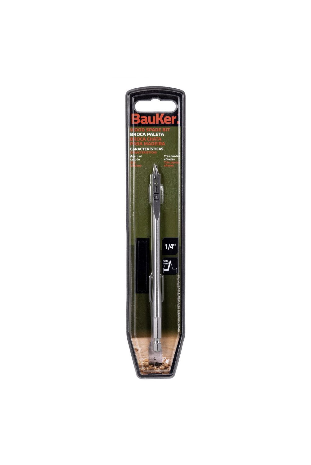 | Características | Acero al carbon, tres puntas afiladas, broca paleta |