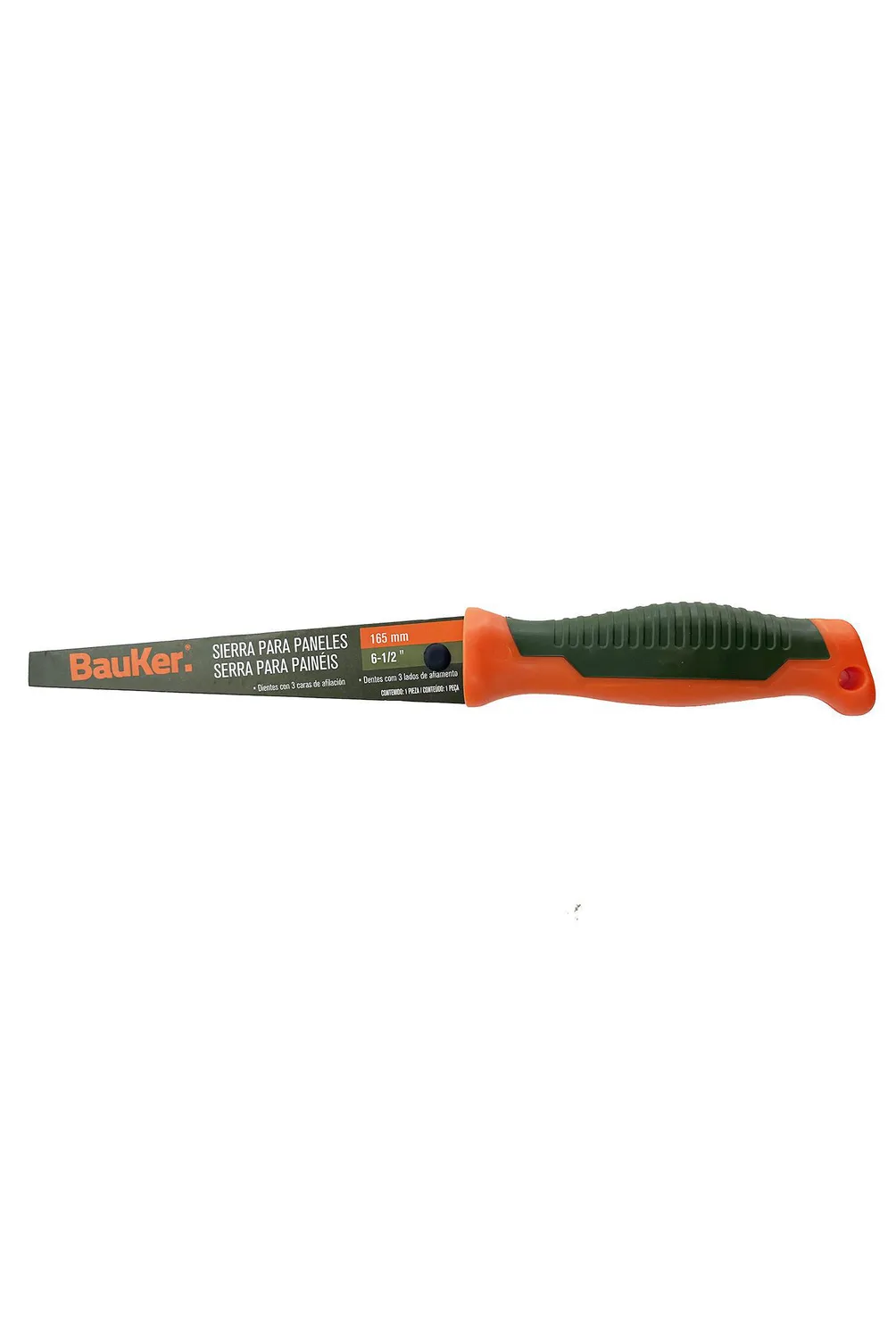 | Características | Hoja: Acero #65Mn con tratamiento térmico. Tamaño de la hoja: 165 mm. Espesor de la hoja: 1,2 mm. Espaciado de los dientes: 8 puntos/pulgada. Mango de PP+TPR. Dientes afilados en tres lados. |