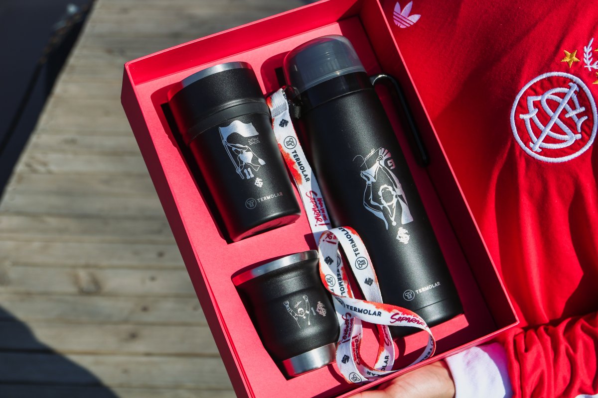 Este kit de edição limitada é composto por produtos Termolar: R-Evolution Preto Hub 1L com Rolha Clickmate Preta, Cuia Tupi 250mL Preta, Copo Pub 500mL Preto e um tirante exclusivo.