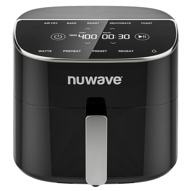 Freidora de aire Nuwave Brio Plus de 8 cuartos, sin PFAS, nueva y mejorada, pantalla táctil digital, pantalla blanca fría, 50°F~400°F en 5° precisos, 5 funciones de cocción, 100 preajustes y 50 memori
