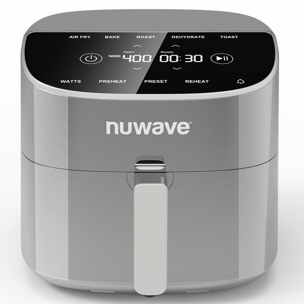 Freidora de aire Nuwave Brio Plus de 8 cuartos, sin PFAS, nueva y mejorada, pantalla táctil digital, pantalla blanca fría, 50°F~400°F en 5° precisos, 5 funciones de cocción, 100 preajustes y 50 memori