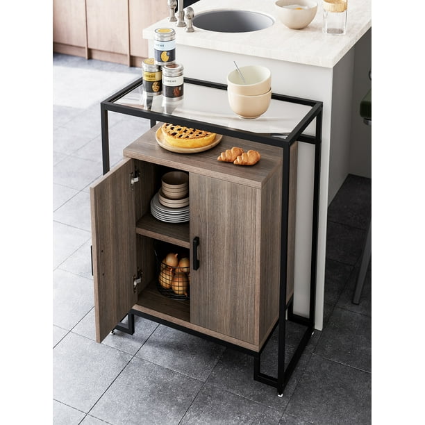 Storage Cabinet with Tempered Glass Top Sideboard Buffet Cabinet with Metal Frame Coffee Bar Cabinet, White and Gold