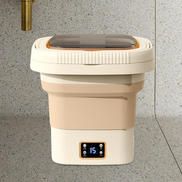 Lavadora portátil plegable, lavadora de cubeta pequeña, alta potencia, fácil de transportar, lavadora pequeña compacta para RV, apartamento, camping, Tapa transparente crema 9L Macarena Lavadora portátil