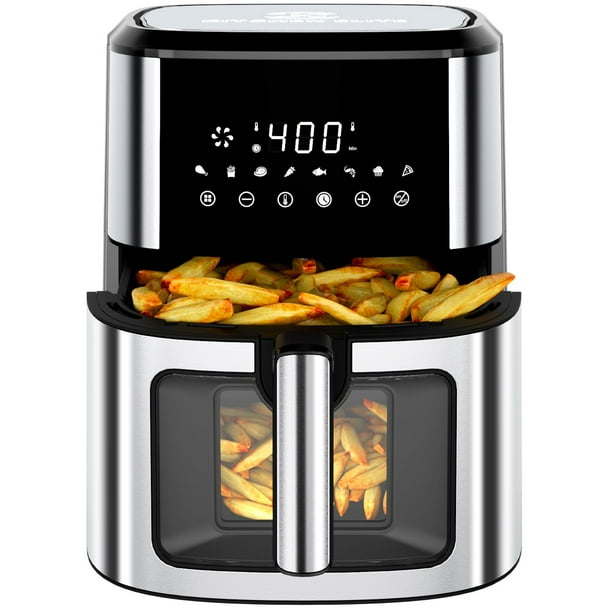 Kitchen Elite Freidora de aire de acero inoxidable con ventana de visualización, freidora de aire grande XL 8.5QT, control digital 8 en 1, controles de temperatura de 400 °F, antiadherente apta para l