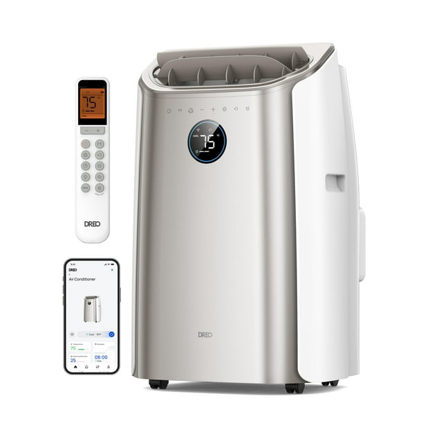 Aire acondicionado portátil Dreo, unidad de aire acondicionado de 12.000 BTU para dormitorio con refrigeración sin drenaje, aire acondicionado inteligente para habitación interior