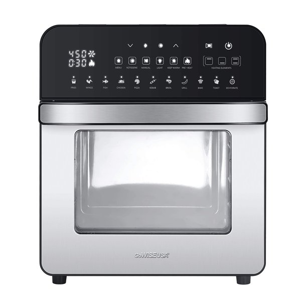 GoWISE USA 14.7-Quart Air Fryer Grill with Dual Heating Elements & Oven with Rotisserie, Dehydrator, Preheat and Broil Functions + 11 Accessories with 2 Recipe Books (Stainless Steel/Black), Ultimate GoWISE USA