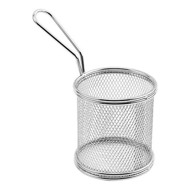 Injueey Cesta frita con asa Utensilios de cocina redondos de acero inoxidable plateado Chef Malla Aceite Colador de alimentos Herramientas para Cocina y Comedor