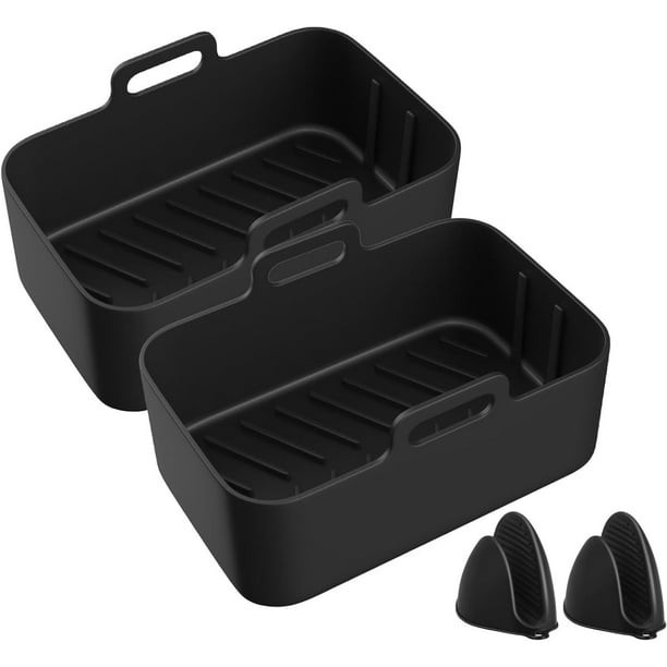 2 ollas de silicona para freidora de aire, forros de silicona reutilizables para freidora de aire, cesta rectangular para freidora de aire, accesorios para freidora de aire (2 unidades, negr