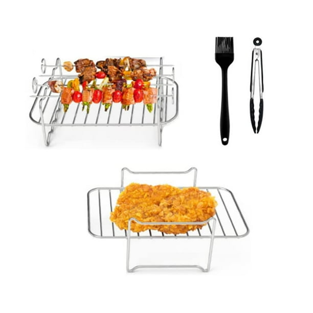 Rejilla para freidora de aire para deshidratador de acero inoxidable, accesorios rectangulares para freidora de aire, cestas dobles, juego de 4 Uds.