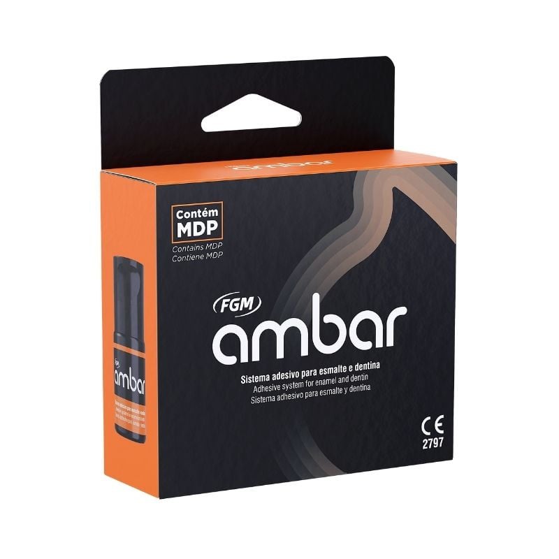 O Adesivo Ambar é indicado para todas as classes de restaurações diretas com compósitos (classes I, II, III, IV e V) e cimentos ionoméricos fotopolimerizáveis. Reparos adesivos em cerâmica e compósitos e cimentação adesiva (em conjunto com cimento resinoso) de peças protéticas (pinos intracanais/núcleos, coroas, onlays/inlays e facetas) em fibra de vidro, cerômero, cerâmica, resina e metal.