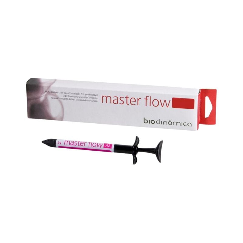 A Resina Master Flow da Biodinâmica é uma resina composta, híbrida e de consistência fluida que apresenta resistência mecânica, brilho e menor contração de polimerização através de micropartículas vitrocerâmicas modificadas organicamente.