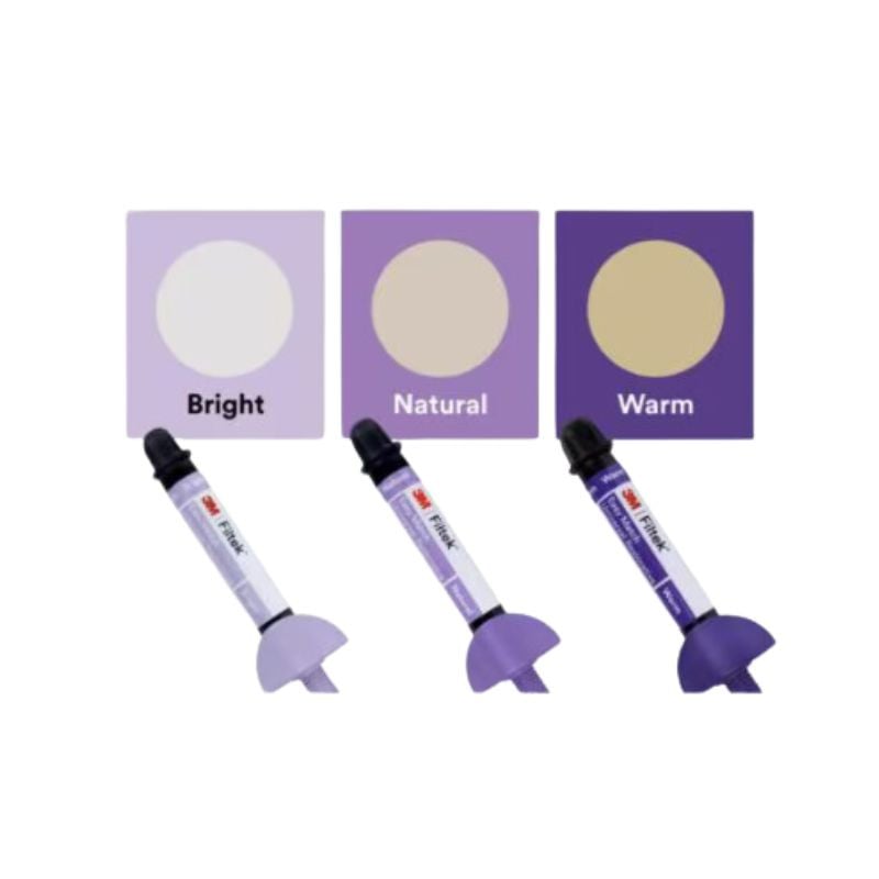 - Três cores (Bright, Natural e Warm) para corresponder à escala de cores VITA Classical.
