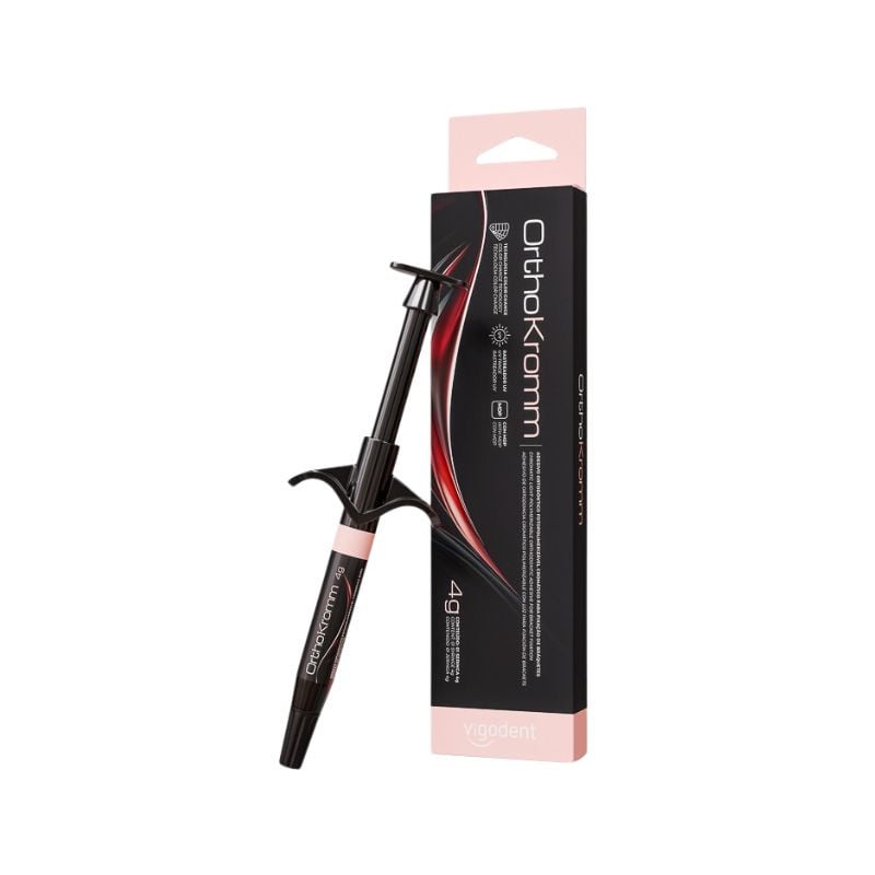 O Adesivo Ortodôntico Ortho Kromm da Vigodent é um sistema adesivo de fotopolimerização especialmente desenvolvido para a colagem de acessórios ortodônticos, como bráquetes metálicos e cerâmicos, bandas, tubos e outros dispositivos diretamente sobre a superfície dos dentes. Este adesivo é formulado para proporcionar adesão forte e duradoura, facilitando o trabalho do ortodontista e garantindo segurança e eficácia durante o tratamento ortodôntico.