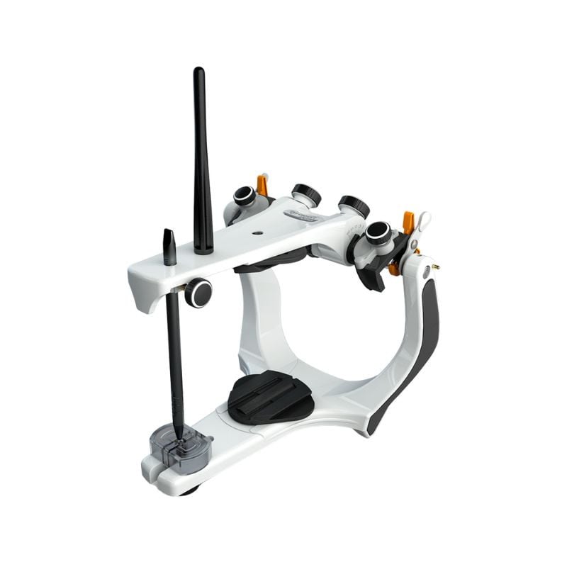 O Articulador A7 Plus com Arco é semi-ajustável ideal para uso em trabalhos em universidades e por profissionais da odontologia. Entre suas vantagens, é possível visualizar um design robusto que proporciona alta estabilidade e visibilidade. O Arco Facial Standard é indicado para registrar a posição da arcada superior da boca e transferir para o articulador. Seu uso apresenta fácil manuseio e elimina o uso de chaves, pois conta com possibilidade de aperto manual para fixação do garfo através das borboletas presentes no equipamento.