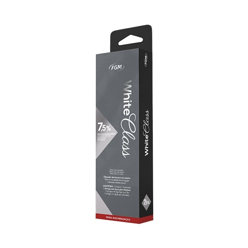 O Clareador White Class 7,5% é indicado para a técnica de clareamento caseiro supervisionado por um cirurgião-dentista. Foi desenvolvido para atender ao público mais exigente, pois conta com menor tempo de uso diário e apresenta resultados mais rápidos quando comparado ao peróxido de carbamida.