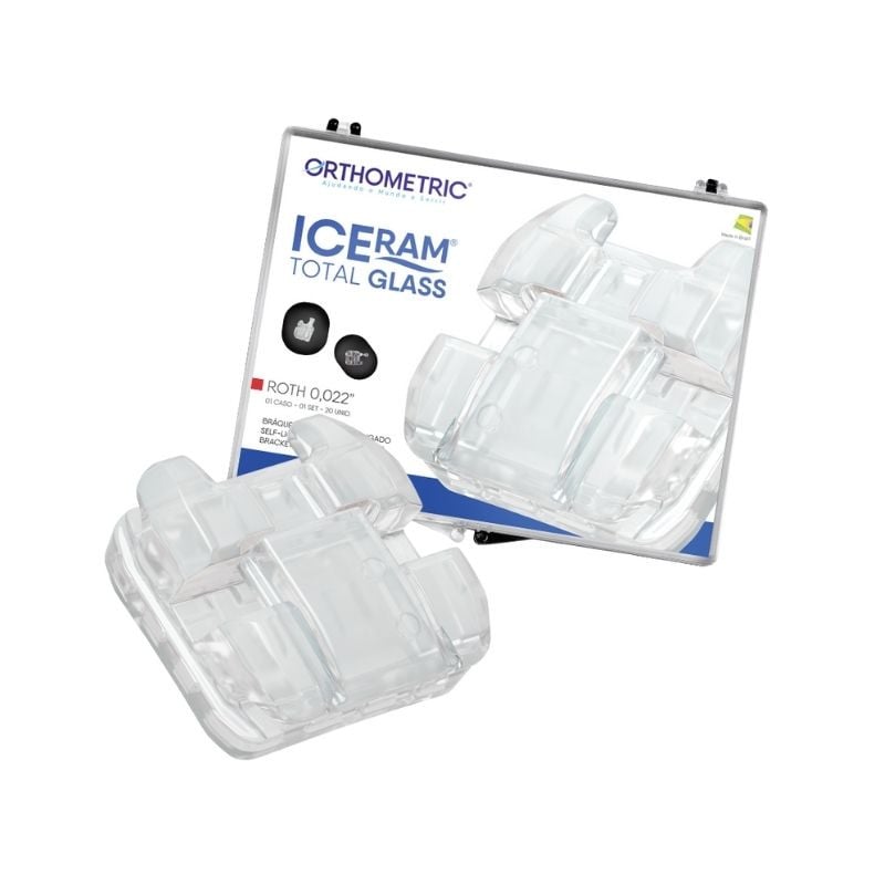 O Kit Bráquete Cerâmico Autoligado Iceram Total Glass Roth 022 é indicado para pacientes que priorizam estética e conforto, o bráquete cerâmico Roth 0,022 com gancho nos caninos e pré-molares se destaca na fase de alinhamento e finalização. O conjunto 5x5 inclui 20 unidades, pronto para aplicação clínica.