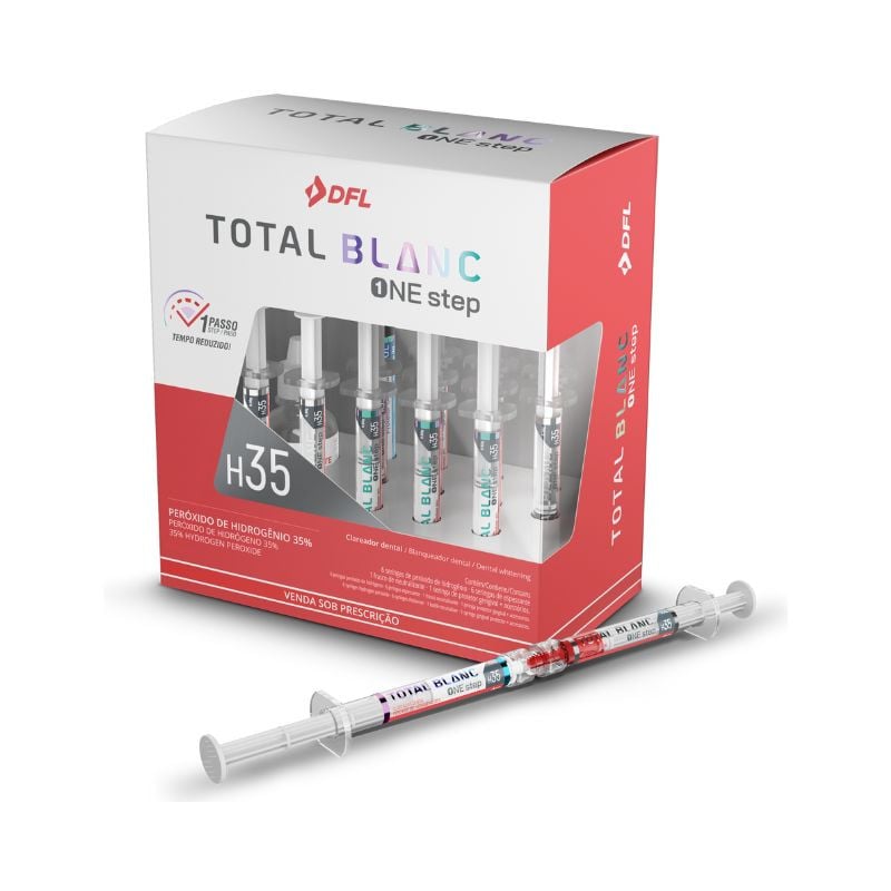 O Kit Clareador Total Blanc One Step é indicado para clareamento de dentes vitais e não vitais em consultório odontológico.