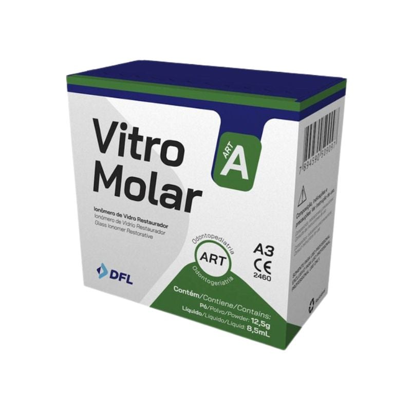 O Kit Ionômero De Vidro Restaurador Vitro Molar é indicado para técnica de ART. Restaurações de dentes decíduos. Restaurações de pequenas Classes I sem pontos de contato e de Classe V. Restaurações provisórias de Classes I e II em dentes permanentes.