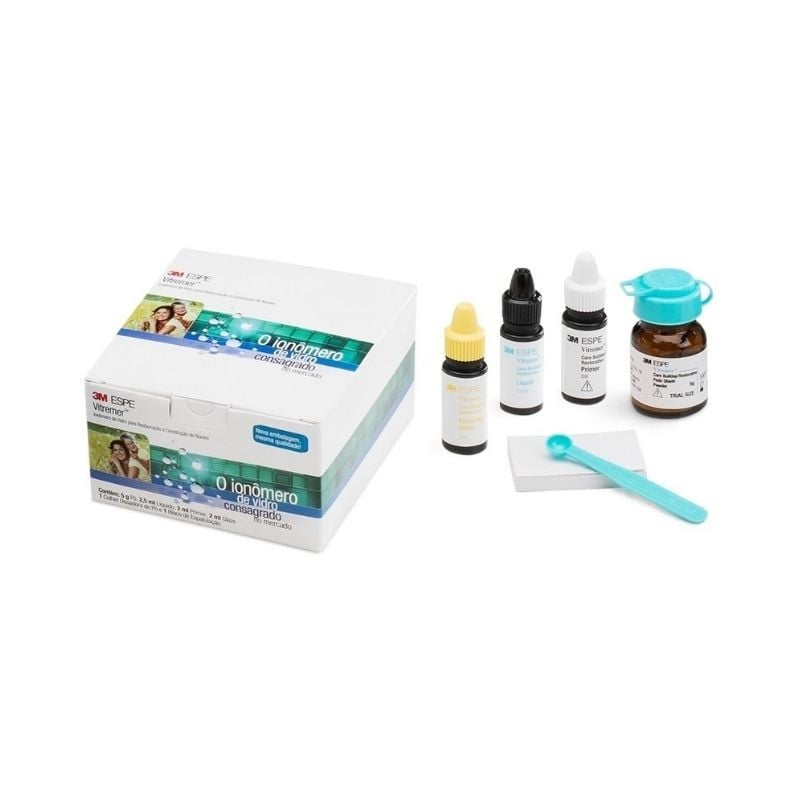 O Kit Ionômero de Vidro Vitremer Pedo é indicado para restaurações e construções de núcleo.