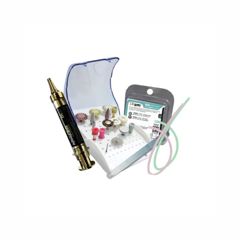 - Composto por pontas abrasivas e polidores clínicos em granulações variadas.