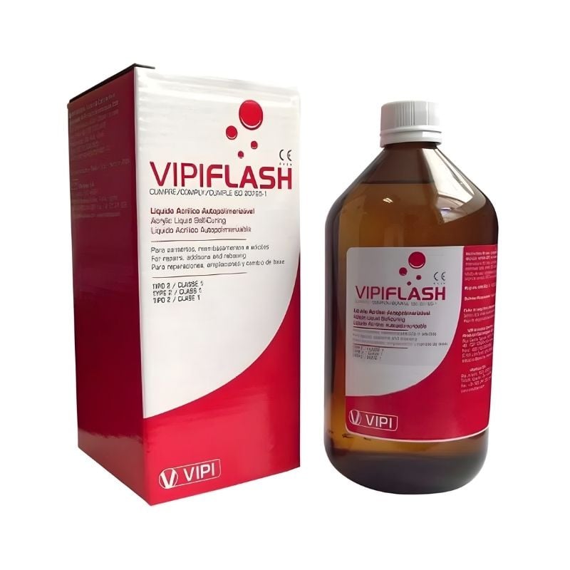 A Resina Acrílica Auto Vipi Flash é indicada para confecção e reparo de próteses totais, parciais, bases de prova e placas, oferecendo excelente adaptação, resistência e acabamento estético em trabalhos laboratoriais.