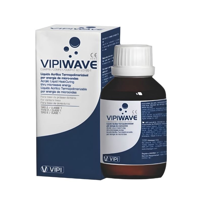A Resina Acrílica Vipi Wave Líquido 250ml é indicada para uso em conjunto com o pó Vipi Termo para Micro-ondas na confecção de próteses totais e parciais, garantindo polimerização rápida, uniforme e de excelente qualidade estética.