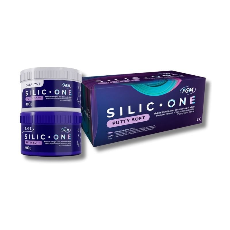 O Silicone de Adição Silic-One Kit Putty Soft é indicado para moldagem primária de implantes, componentes protéticos, restaurações indiretas, próteses dentárias, arcadas edêntulas, próteses parciais removíveis, laminados e coroas sobre dentes.