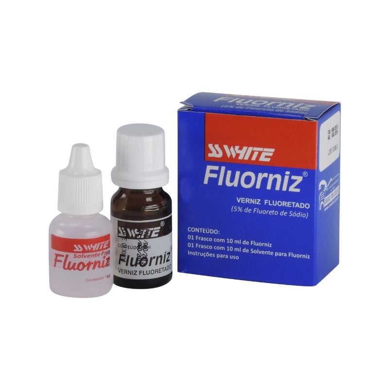 - Verniz com flúor contendo 5% de fluoreto de sódio (equivalente a 2,26% de flúor) em uma base adesiva de resinas naturais.