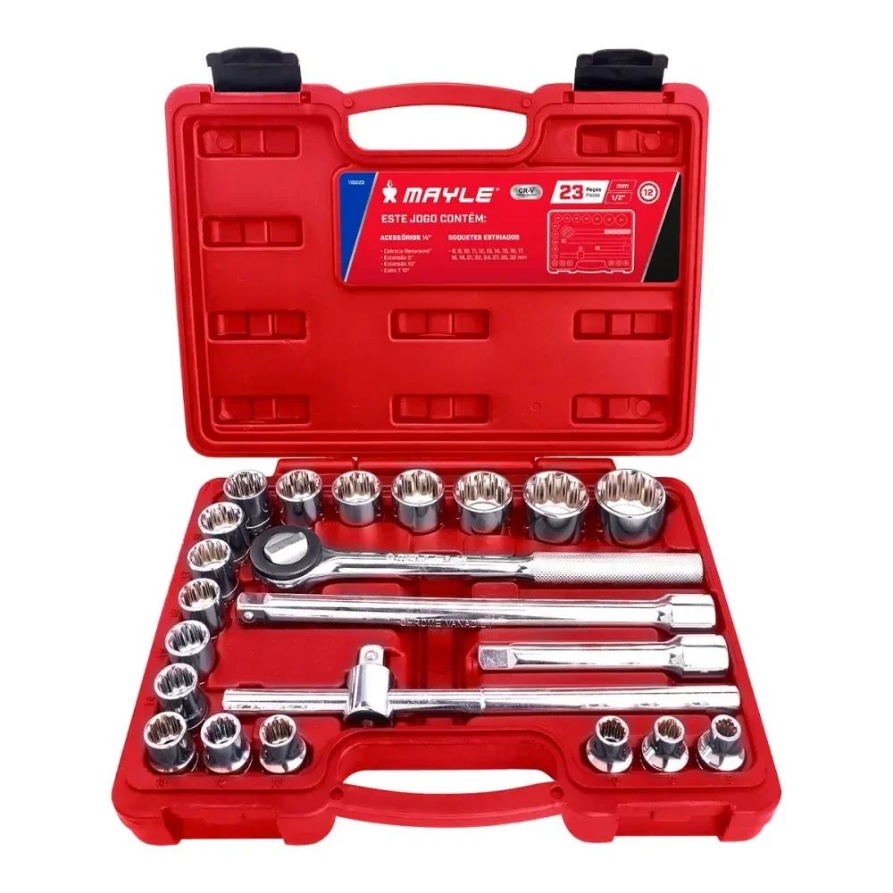 Kit de Soquetes Estriados Cr-V 1/2” 8 -32mm 23 Peças Mayle
