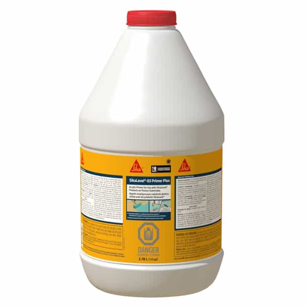 SikaLevel®-03 Primer Plus is a one-part, water-dispersed and solvent-free, acrylic-based solution used to prime floor surfaces prior to the application of Sika® Level products. For use on wood and concrete. 30 minutes drying time on concrete. For interior use only. Paints on green, dries clear.