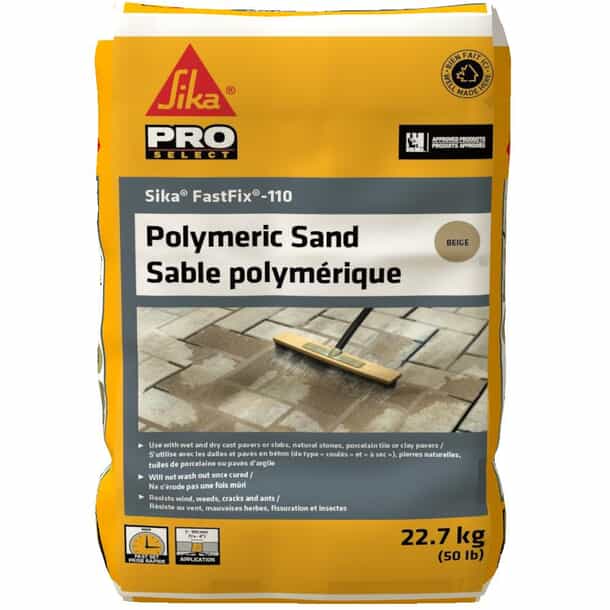 Sika FastFix®-110 is a high-performance polymeric sand designed specifically for filling joints between interlocking pavers, stone, bricks, and slabs. Sika FastFix®-110 provides a durable joint that resists erosion, weed growth and insects. Fast gel time to resist unexpected rain after installation. Increased flexibility and durability. Resistant to weed growth and deters insects. Washout resistant. Can be applied at a range in joint thickness from 3 mm to 100 mm (1/8" to 4").