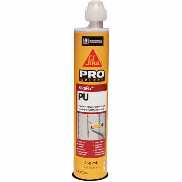 Flexible Polyurethane Grout. High bond strength even to damp surfaces. Can be used to stop water under a hydrostatic head and provide a resilient tough and flexible, closed cell polyurethane grout. Cracks in tanks, tunnels, pipes, basements, pools, subways or any structure where water intrusion must be stopped.