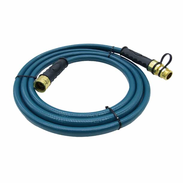 With female couplings on both ends and a male adapter connected to one end. HOME ESSENTIALS hose provides every coupling combination for all your garden hose needs. This utility hose is ideal for extending your garden hose, as a connector hose for a hose reel, as a soaker system leader hose and as a dehumidifier drain hose. This 10-ft. universal hose is also excellent for any short-length watering application, so you can water small jobs in small spaces with ease. This heavy-duty universal hose also provides a strong 400+ PSI burst strength, crush-resistant couplings and is constructed of a unique compound for extreme kink-resistance.