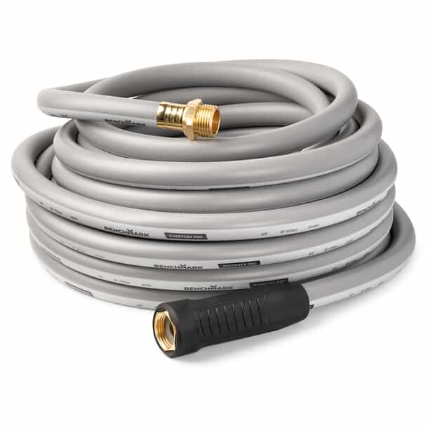 This durable heavy-duty hose is designed for life’s more demanding everyday jobs. Whether you’re washing your driveway or watering a large garden, its thick 5/8” interior diameter offers a great balance of high-volume water flow and easy handling. Made from durable 3-ply virgin PVC and rated for up to 450 PSI of burst pressure, this hose is built to last. UV protection and externally crimped brass fittings provide reliable protection against corrosion, leaks and temperature damage.