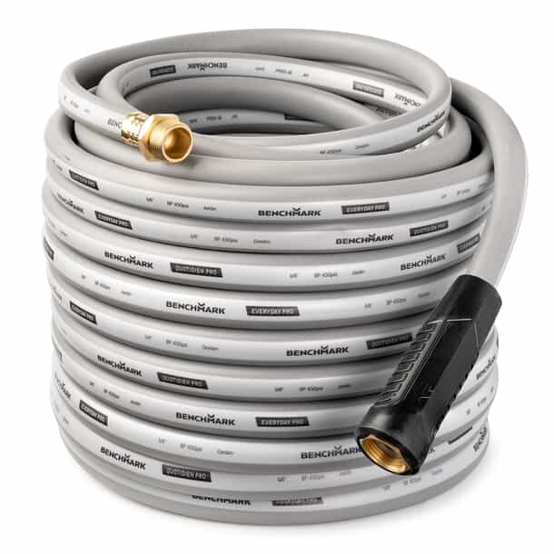 This durable heavy-duty hose is designed for life’s more demanding everyday jobs. Whether you’re washing your driveway or watering a large garden, its thick 5/8” interior diameter offers a great balance of high-volume water flow and easy handling. Made from durable 3-ply virgin PVC and rated for up to 450 PSI of burst pressure, this hose is built to last. UV protection and externally crimped brass fittings provide reliable protection against corrosion, leaks and temperature damage.