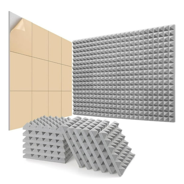Panel Acústico Piramidal • AutoAdhesivo • Pack x12 • Gris