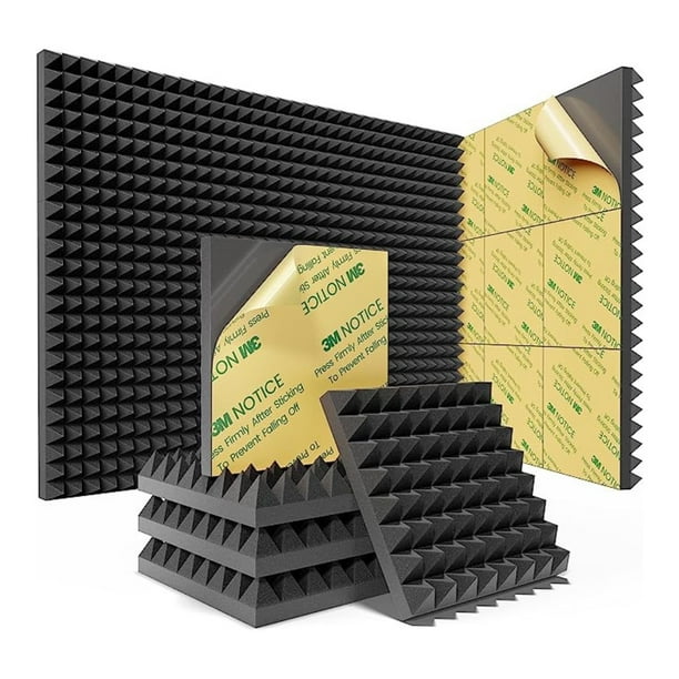 Panel Acústico Piramidal • AutoAdhesivo • Pack x12 • Negro