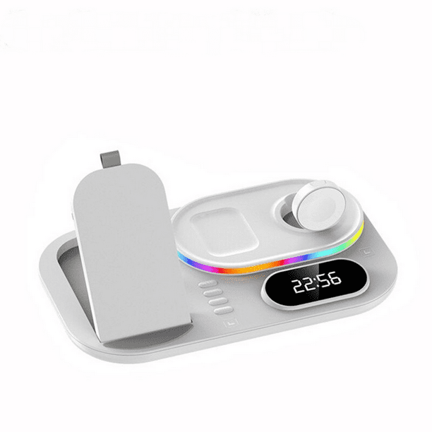 Base de carga inalámbrica 4 en 1 con luz para iPhone 14/13/12/11/X, Apple Watch, AirPods, Samsung Galaxy Watch, base de carga rápida-Blanco para Samsung