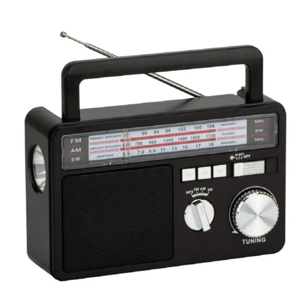 Radio Portatil Panel Solar LED USB SW AM FM Negro