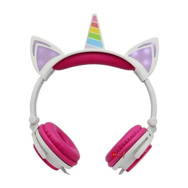 Audífonos Unicornio Niños Rainbows Sound Led Rosado - Ps