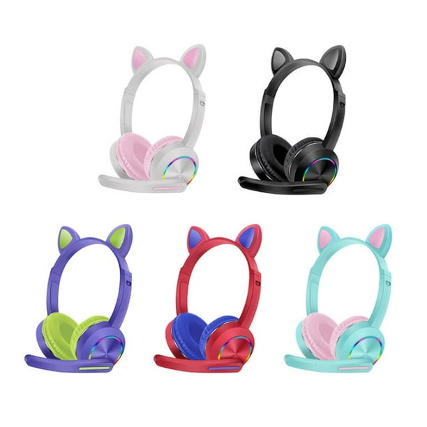Audífonos Cat Ear Con Micrófono Y Luz Led Akz-K23 Morados