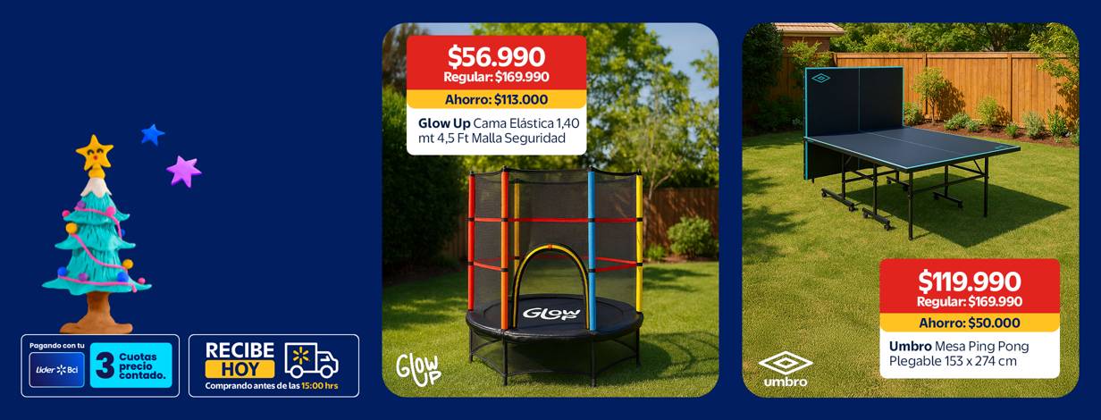 Disfruta momentos únicos con la cama elástica Glow Up y la mesa de ping pong Umbro.